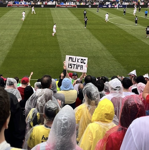 Bir taraftarın tribünde “Ali Koç istifa” pankartı açtığı görüldü
