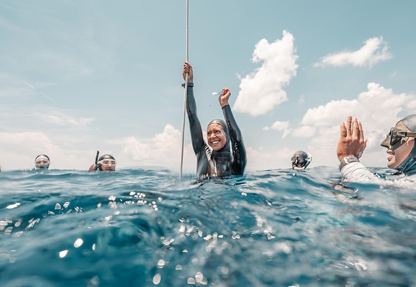 Serbest dalışın en şiddetli alanında muvaffakiyet kazandı.
