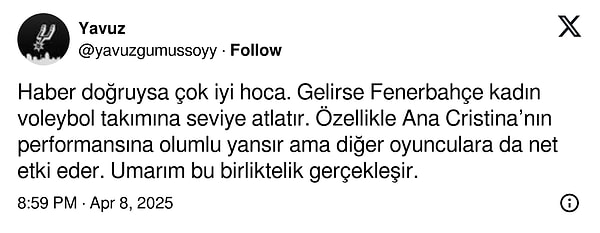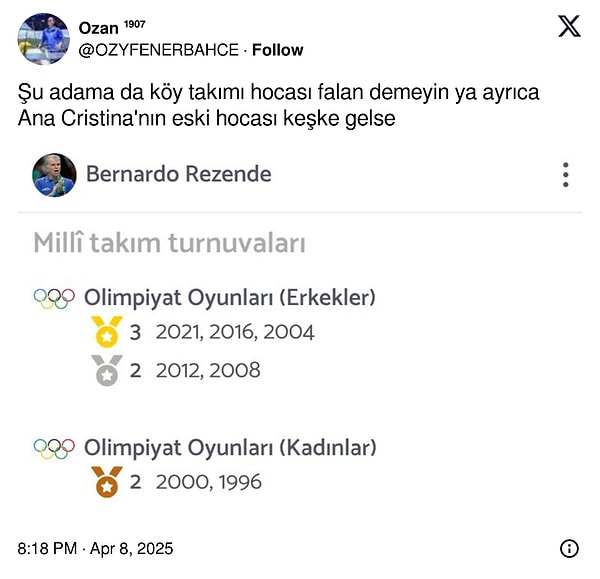 Gelecek dönem şampiyonluk amaçlarına ulaşmak isteyen Fenerbahçe Bayan Voleybol Kadrosu’nun yeni başantrenörünün Brezilya Erkek Mili Ekibi ile önemli muvaffakiyetler elde eden Bernardo Rezende olacağı voleybol dünyasının gündemine oturdu. Pekala mümkün transfer için taraftarlar ne diyor?