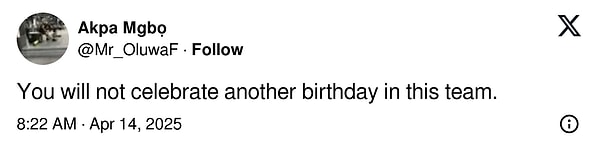 “Dünkü performanstan sonra doğum günü dileğini hak etmiyor.”