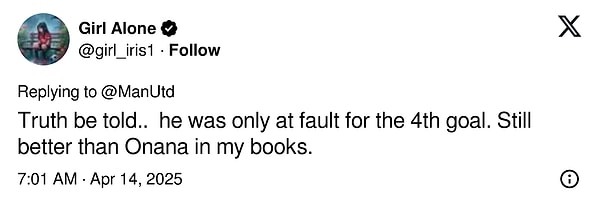 “Doğruyu söylemek gerekirse… yalnızca dördüncü golde kusurluydu. Yeniden de benim gözümde hâlâ Onana’dan daha uygun.”