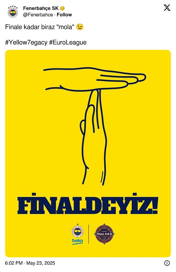 Fenerbahçe’den “Finale kadar biraz ‘mola'” paylaşımı geldi.