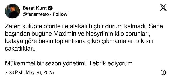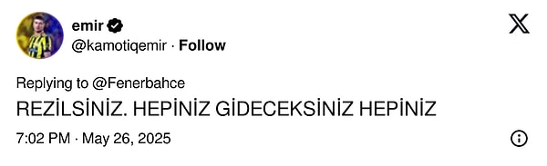 Fenerbahçe taraftarının yenilgi sonrası toplumsal medya paylaşımlarından birkaçı şöyle