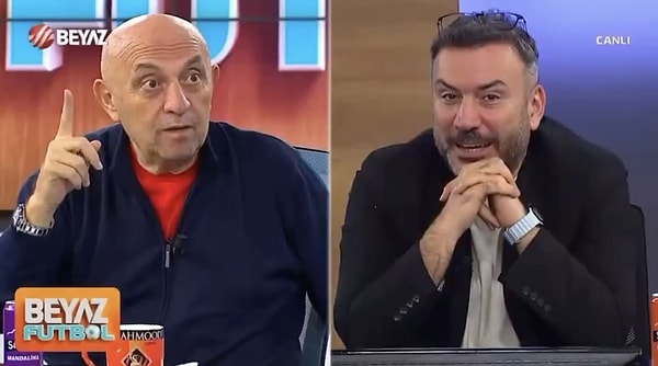 ‘Beyaz Futbol’ programının canlı yayında Uzak Kent’in senaristine seslenen Engin “Senaristten bir şey rica ediyorum, bak dinle beni” diyerek bahse girdi.