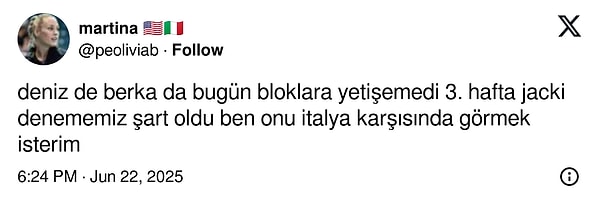 Milletler Ligi’nde 7’de 7 yaparak dayanılmaz bir ivme yakalayan A Ulusal Bayan Voleybol Ekibimiz, sekizinci maçında turnuvanın favorilerinden Brezilya’ya İstanbul’da kaybetti. Filenin Sultanları’nın mağlubiyeti sonrası voleybolseverler toplumsal medyada başantrenör Daniele Santarelli’nin tercihlerini sorguladı.