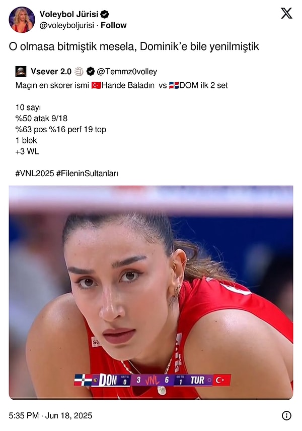 Milletler Ligi’nde şimdi kaybetmeyen Filenin Sultanları’nın Dominik karşısındaki oyunu voleybolseverlerin beklentisinin altında kaldı. Toplumsal medyada maça dair öne çıkan paylaşımlarda genel görüş, parkede heyecanın olmamasıydı.