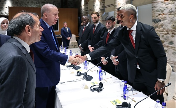 Galatasaray kafilesi şampiyonluğun akabinde Dolmabahçe Sarayı’nda Cumhurbaşkanı Recep Tayyip Erdoğan’ı ziyaret etti. Ziyaret esnasında sıcak manzaralar olurken Erdoğan’a forma ikramı de gerçekleşti.