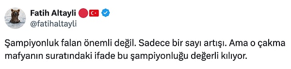 Galatasaray’ın şampiyonluğu sonrası bir paylaşım da gazeteci Fatih Altaylı’dan geldi.