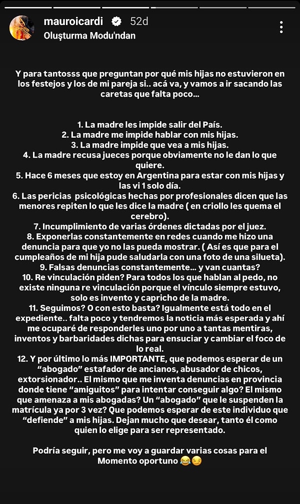 Icardi’nin toplumsal medya hesabından Wanda Nara’ya dair yaptığı açıklama