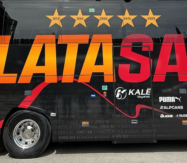 Galatasaray, geçtiğimiz hafta şampiyonluğu garantileyerek Göztepe deplasmanına geldi. 5.yıldız sevinci yaşanan toplulukta ekip otobüsü de elden geçirildi. Otobüse sarı kırmızılıların aldığı beşince yıldız eklenirken, yıldızlarda kazanılan yıllar yazıldı.