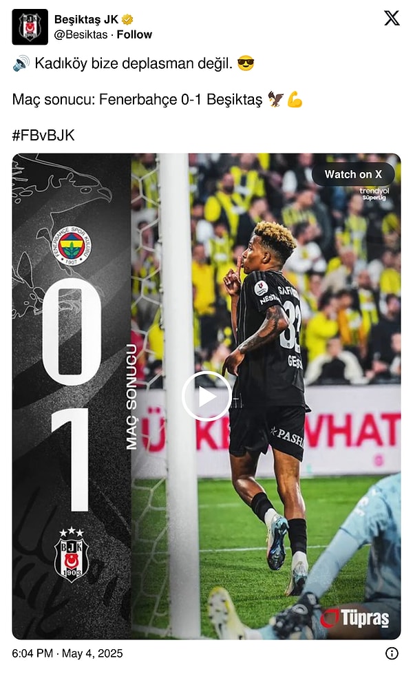 Beşiktaş ana hesaptan “🔊 Kadıköy bize deplasman değil. 😎” paylaşımı yaparak dikkat çekti.