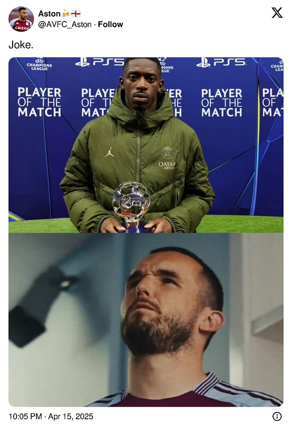 Luis Enrique idaresinde bu dönem yeterli bir çıkış yakalayan Paris Saint Germain, Şampiyonlar Ligi’nde evvel Liverpool’u akabinde da Aston Villa’yı eleyerek yarı final bileti aldı. Fransız takımın yıldızı Dembele, çeyrek finalin rövanşında maçın oyuncusu seçildi. Toplumsal medyada UEFA’nın kararının adil olup olmadığı sorgulanırken Dembele’nin mükafatını aldığı anlardaki yüz tabiri de birçok yorumu beraberinde getirdi.
