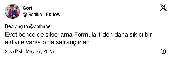 Sosyal medyada kimi kullanıcılar Carlsen’in esprili yaklaşımına hak verirken kimi F1 tutkunları bu fikrin yanlış olduğunu lisana getirdi.