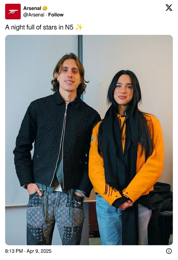 Tribüne Gelmişti: Arsenal’den Dua Lipa ve Calafiori Paylaşımı