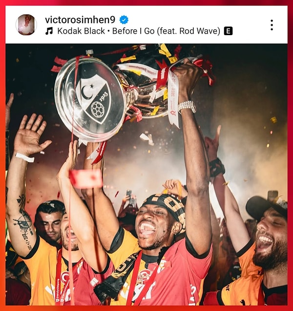 Instagram hesabından şampiyonluk kutlamalarına dair paylaşımda bulunan Osimhen gönderisine “Before I Go” müziğini ekledi.