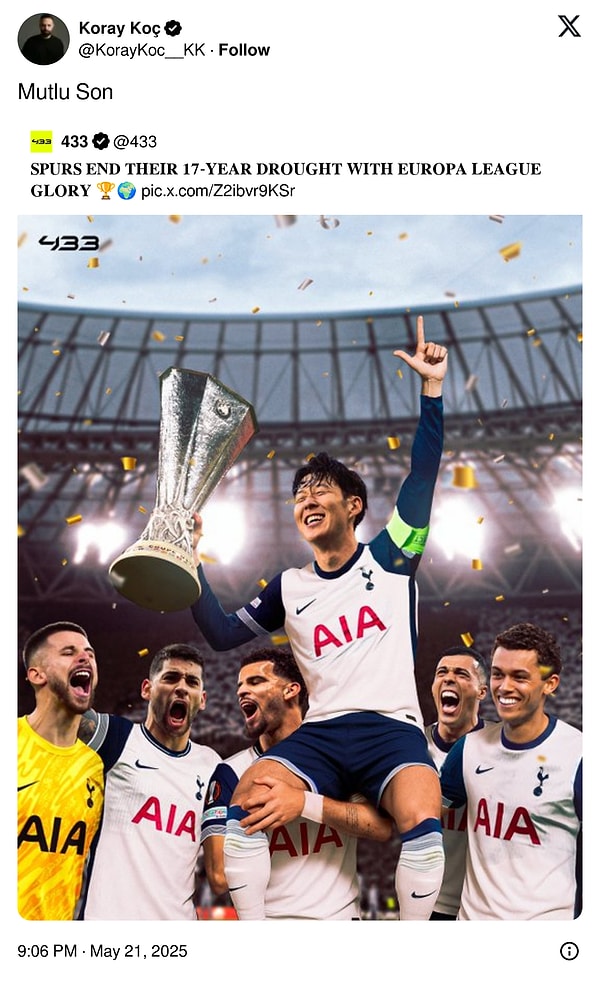 Geçtiğimiz hafta spor dünyasının gündeminde futbolun yanı sıra basketbol da vardı. Fenerbahçe Beko, Avrupa’nın en büyüğü oldu. Sarı-lacivertli temsilcimiz Euroleague’de şampiyonluğa ulaşırken Final Four’un öncesine ve sonrasına dair Twitter’da birçok paylaşım yapıldı. Premier Lig’de bu dönem tabanı gören Tottenham, tıpkı durumdaki rakibi Mancehster United’ı Avrupa Ligi finalinde mağlup etti, kupa hasretine son verdi. Galatasaray, Yenikapı’da taraftarıyla buluştu, Üstün Lig’i dorukta tamamalamanın sevinci yaşandı. Bakalım kimler Twitter’daki yorumlarıyla yaşananlara renk katmış?